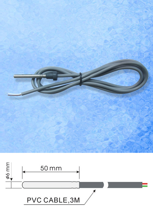 1.Specificaiton: Φ6*50mm,Temperature measuring range:0℃∽+105℃ 2.Cable length:3m pvc cable,Temperature resistance range:≤105℃