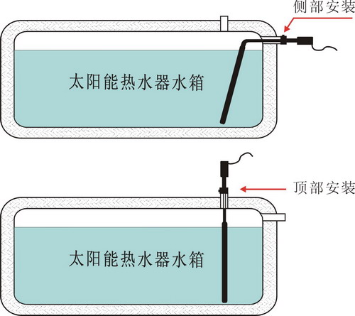 硅胶水位水温传感器适用于一体非承压太阳能水箱侧部与顶部安装。